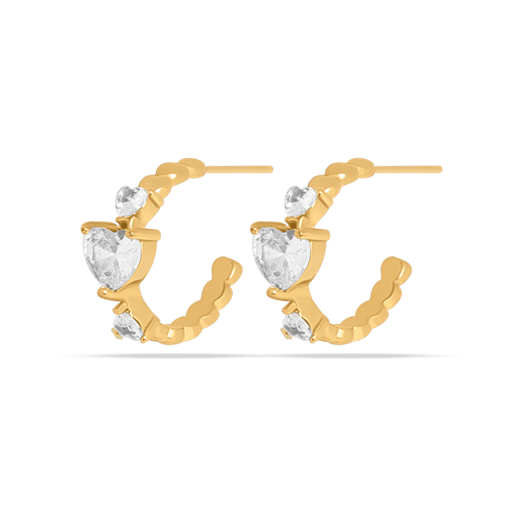 Il gioiello Ioanna incarna un mix perfetto di romanticismo e raffinatezza. Questi orecchini placcati in oro, presentano un design unico a cerchio decorato con dettagli a forma di cuore e luminosi punti luce. Ideali per chi cerca un accessorio che non passi inosservato, questi orecchini aggiungono un tocco di brillantezza e stile a qualsiasi outfit, dal casual al più elegante. Regala o regalati un gioiello dal fascino unico.