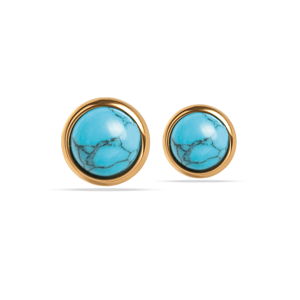 L’orecchino Iole è un semplice bottone placcato oro con decorazione simil pietra turchese.