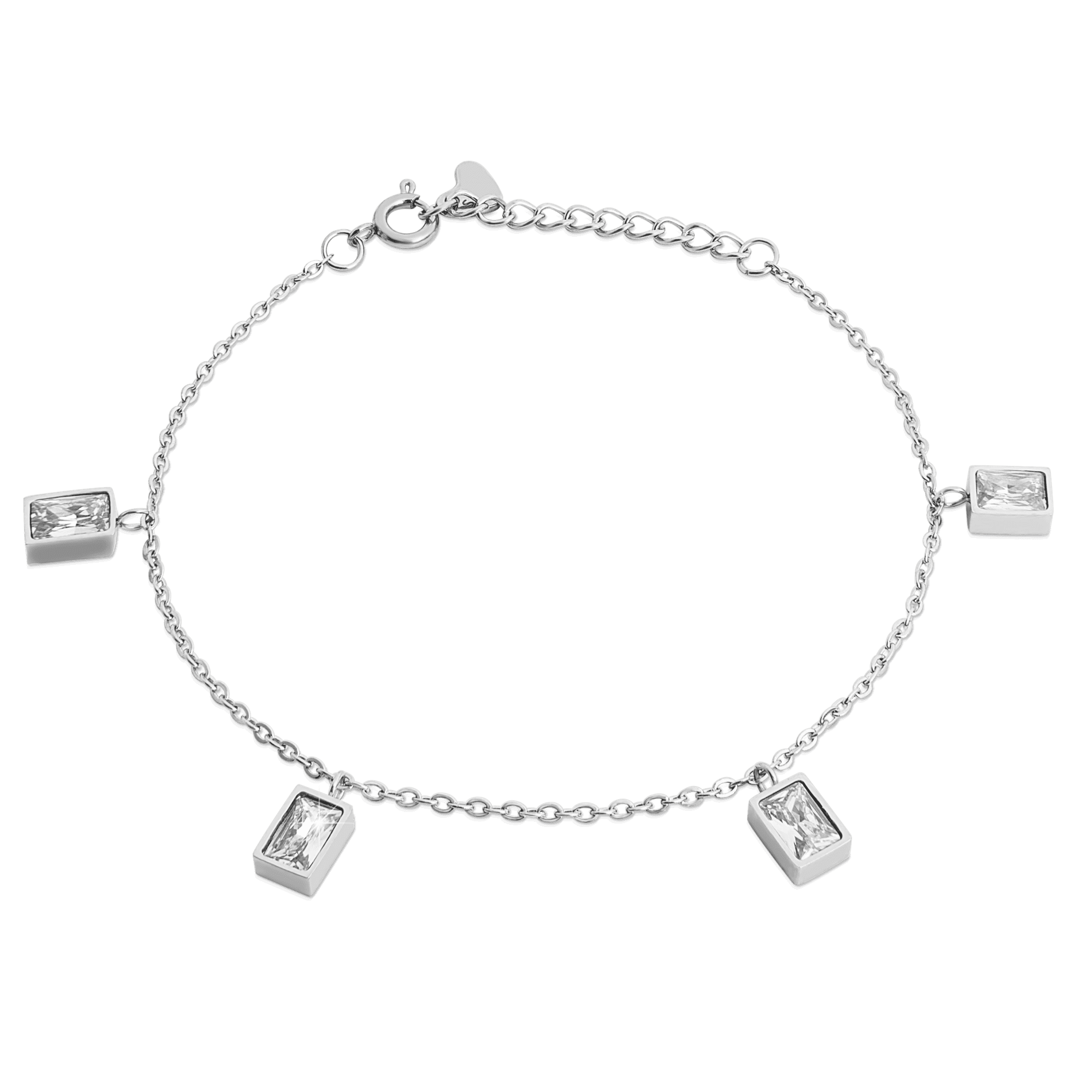Less is more, e il bracciale Sofia ne è la prova. Una braccialetto di acciaio chirurgico si unisce a tre pendenti quadrati, ognuno scintillante come un cristallo di ghiaccio sotto il sole invernale. È un accessorio che sussurra la sua presenza piuttosto che urlarla, aggiungendo un tocco di classe discreta al tuo look quotidiano, e tutto questo mantenendo i costi sorprendentemente accessibili.